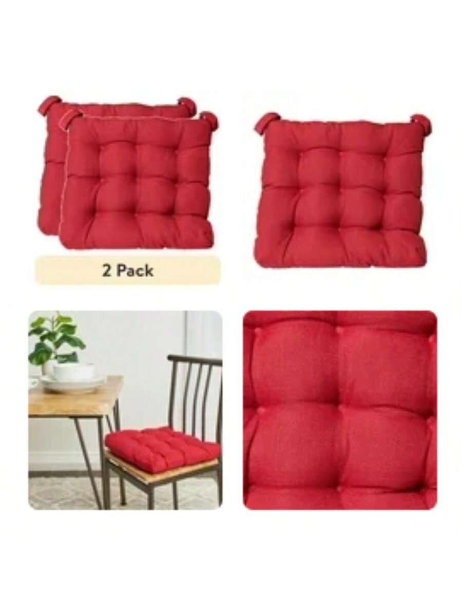 2-Pack Textured Chair Seat Pad (Chair Cushion), Red, 15.5″ X 16″